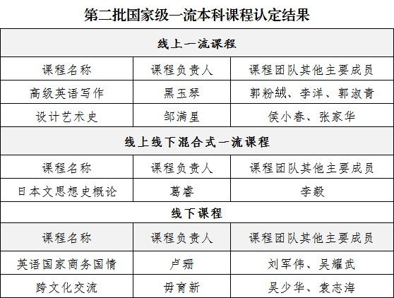 日前,教育部公布了第二批国家级一流本科课程名单,百合漫画 2门课程入选。其中日本思想史概论》入选线上线下混合式一流课程,《跨文化交流》入选线下一流课程。