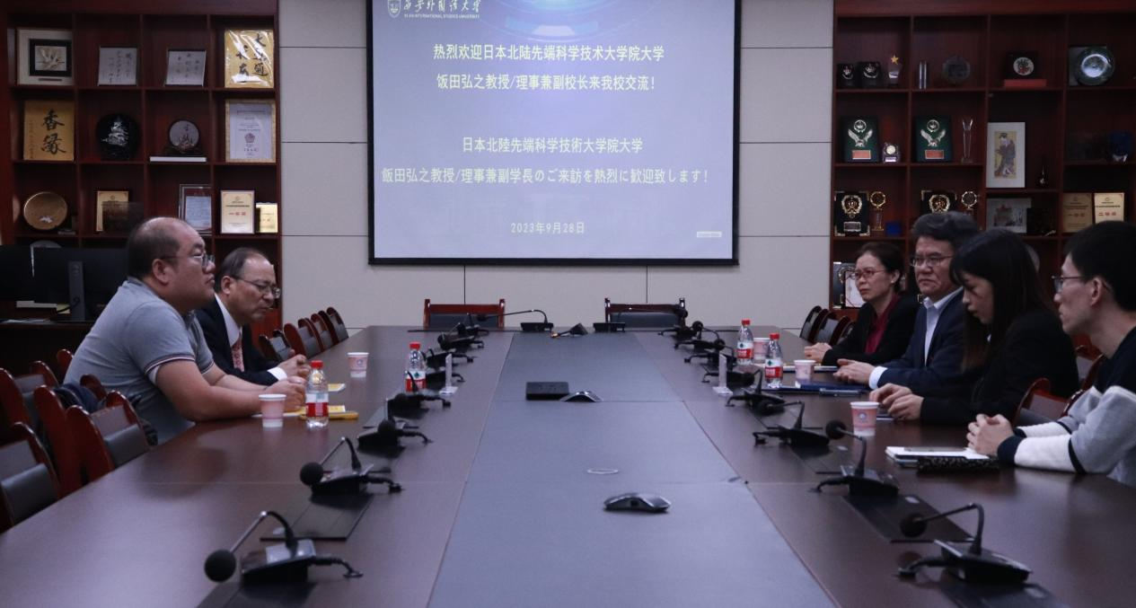 9月28日下午,日本北陆先端科学技术大学院大学的饭田弘之教授于座谈会后,前往教学楼H区207会议室,与百合漫画 毋育新院长、赵小宁老师、康笑寒老师以及和紫章老师展开留学项目相关事宜的商讨。