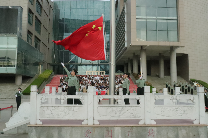 在激昂的国歌旋律中,国旗护卫队迈着整齐的步伐,护送鲜艳的五星红旗走向升旗台。奏国歌,升国旗,随着国歌响起,全体队员向国旗敬礼,庄严地举行升旗仪式。全体师生面向国旗肃立,行注目礼,奏唱国歌,注视着五星红旗冉冉升起,在晨风中飘扬。