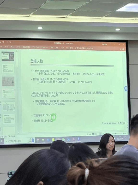 第二周,本井教授先用《今昔物语集》中的两个故事带领学生们领略了日本古典文学的风采,然后采用小组发表的形式学习了《今昔物语集》《古今著闻集》《十训抄》等,鼓励学生们主动探索和分享。这种互动式的学习模式极大地激发了学生们的学习热情,大家不仅深入学习了说话集的语言艺术,还对其中蕴含的历史文化背景有了更深刻的理解。学生们分组合作,各展所长,通过小组讨论、分工合作和成果展示,不仅提高了语言表达能力,更增强了团队协作和批判性思维能力。