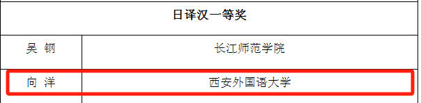 向 洋,获汉译日一等奖,指导老师:杨晓钟;