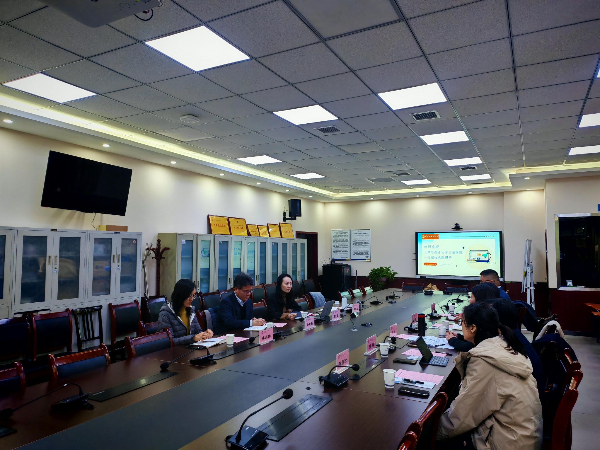 2024年11月29日,天津外国语大学日语学院院长席娜、院长沈霞、文化系主任田泉、翻译系主任贾丽、教学秘书陈彦汝一行莅临百合漫画 进行调研。百合漫画 研究生院院长毋育新、百合漫画 副院长(主持行政工作)葛睿、党委副书记龚玉伟、翻译教研室主任韩思远参加了此次调研座谈会。