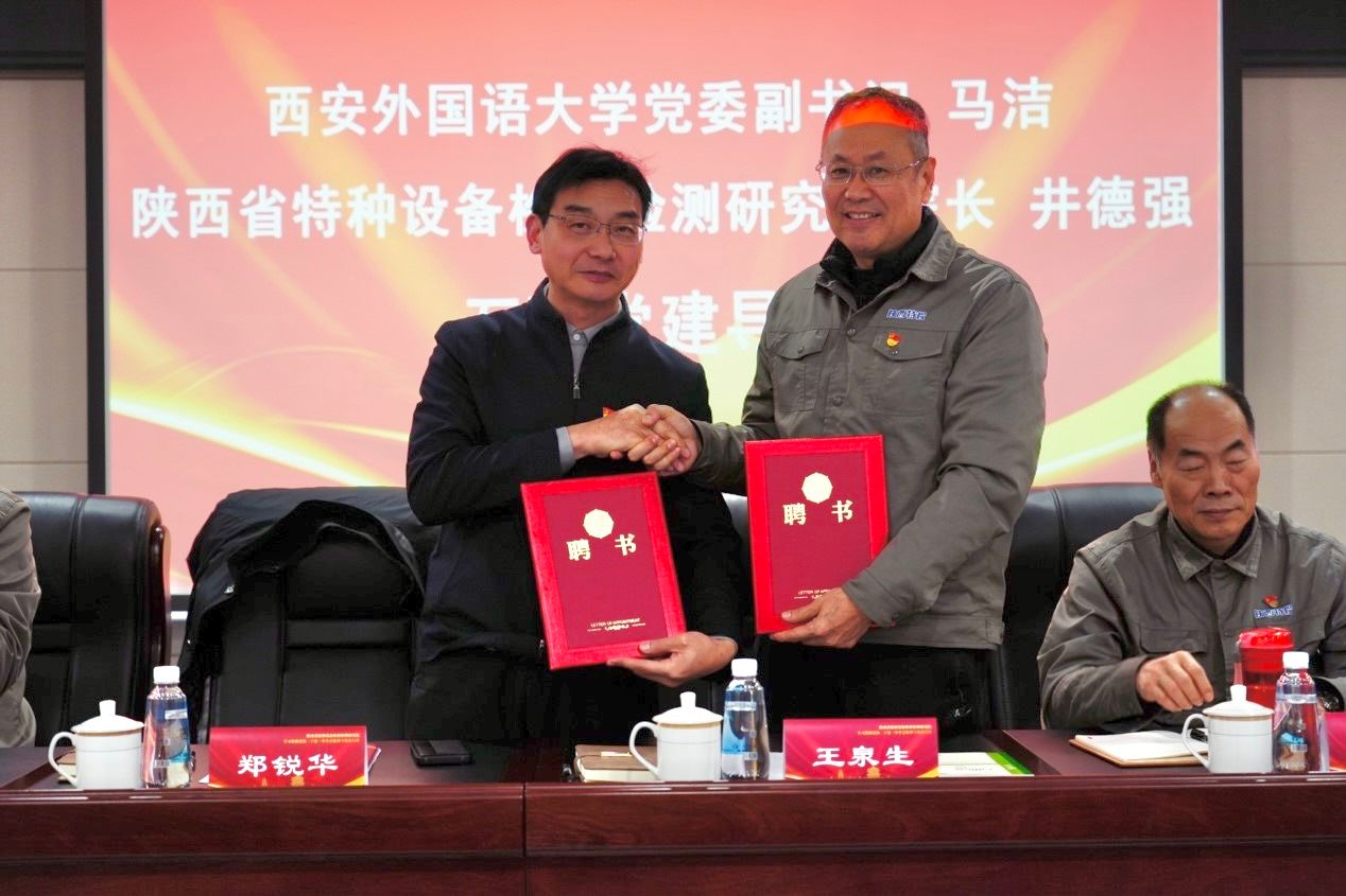 为加强党建合作,深入开展党建交流,开班式上,杜刚跃宣读了我校组织部与陕西省特检院党委“党建结对共建协议书”,黄立波与该院副院长马琰共同签署了协议,随后双方互聘党建指导老师,进一步明确共建目标,深化合作共识。