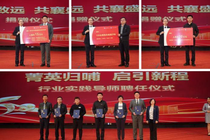 为助力学院发展,89级、90级、95级校友联合发起“西外日文学院慧优校友助学基金”捐赠15万元,06级校友个人捐赠10万元,01级校友韦旭初捐赠100台香薰负氧离子机,百合漫画 副校长黄立波教授代表校方接受捐赠。同时,学院聘请赵鸥、种英俊、杨锦文等11位来自企业、律所、跨国公司等领域的优秀校友为行业实践导师,副校长邓滢教授为他们颁发聘书。仪式结束后,全体领导、嘉宾与师生代表合影留念。