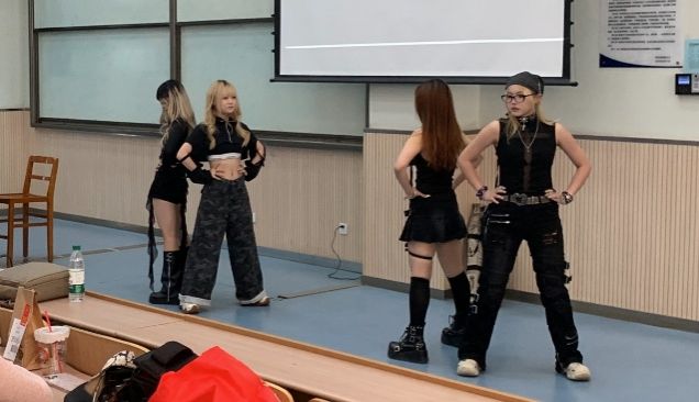 中场计分期间, 大艺团成员 为大家带来了 两场舞蹈表演《 feel my rhythm 》《 whiplash 》和一首动听的歌曲《一笑倾城》, 她们轻巧灵动的舞姿和 婉转 动听的嗓音让人眼前一亮,缓解了赛场紧张的氛围。 台下的同学们为表演鼓掌喝彩,舞蹈曲目和歌唱节目青春飞扬,彰显出满满的活力和大艺团成员们深厚的舞台功底。