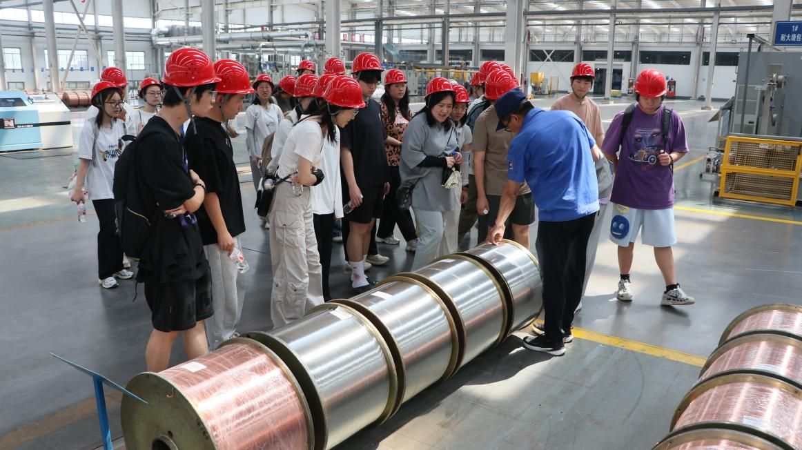 电线电缆生产车间的实地考察,近距离观察制造流程,是本次实践活动的重点环节。在拉丝车间,同学们目睹铜杆经过多道模具拉伸,最终变成细如发丝的铜导体,直径精度控制在±0.01mm内,其中最细的铜丝直径仅仅只有0.12mm;绞线工序中,36盘绞线机将多根铜丝绞合成规整的缆芯,全自动张力控制系统确保绞合均匀;防火电缆生产线是参观重点,该生产线严格执行温度控制标准,确保导体屏蔽、绝缘层和绝缘屏蔽的挤出质量;成缆包装区配备智能机械臂,实现电缆自动盘绕包装。特别值得一提的是车间的环保设施齐全,环境整洁,激励人心的标语随处可见,改变了同学们对制造业车间的刻板印象。