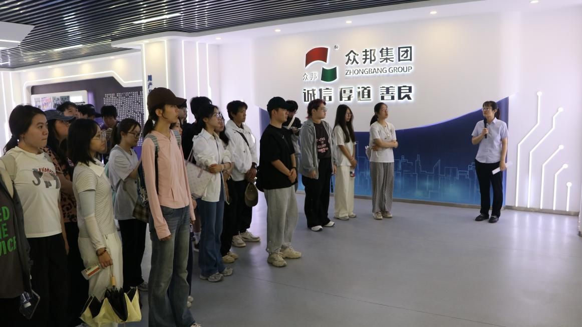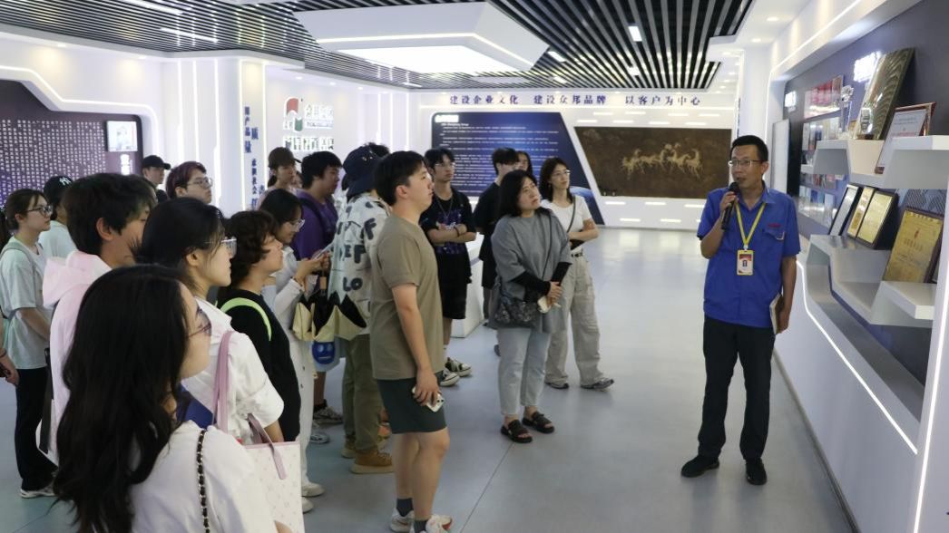 在集团领导的引导下,同学们首先参观了企业展厅。展厅全面展示了众邦电缆从1999年创立至今的发展历程,通过企业业绩案例展示墙和实物展品,同学们了解到企业参与的中国航天酒泉卫星发射基地、西安地铁14号线等国家级重点项目案例。展厅内陈列的"中国驰名商标"、"中国线缆行业最具竞争力企业"等荣誉证书,以及"诚信、厚道、善良"的百合漫画墙,也让同学们对制造业企业的价值观有了全新认识。