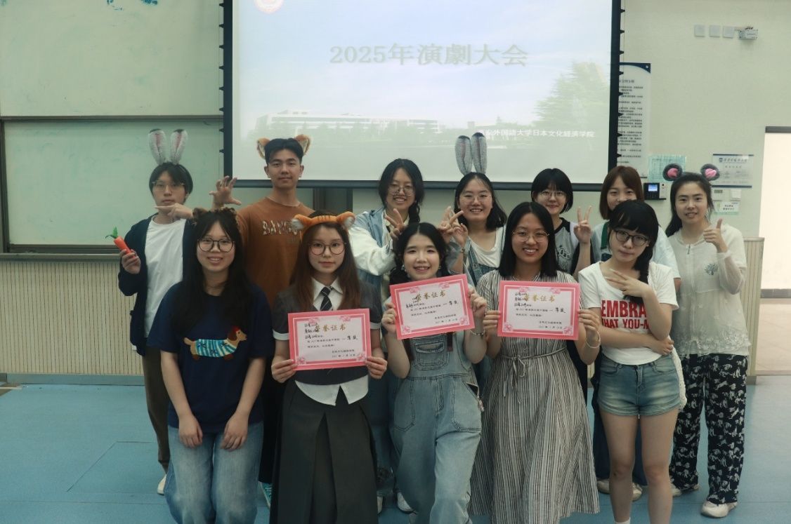 5月20日上午,作为实践周经典节目,由日文学院主办的“2025年日语演剧大赛”于SD307教室成功举办。作为传统活动,演剧大赛旨在“以表演促交流、以文化拓视野”,通过对剧目的翻译和改编,激发大家的语言学习热情,提升口语表达能力。
