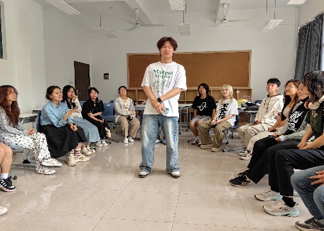 第三环节是抢椅子游戏,规则别出心裁——只有当老师或“鬼”同学喊出的条件(如“身高180以上的同学”“昨晚十二点还没睡的同学”)符合自身情况时,才能起身抢椅子。最后的淘汰者则要接受用 身体 写字的惩罚,滑稽的动作引得全场爆笑。
