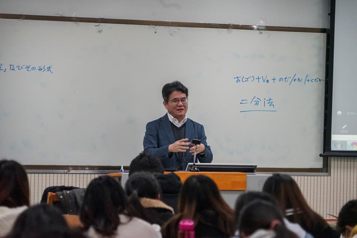 观摩教学中,毋育新教授以《日语的顾及表达方式》为题,通过和汉语、英语比较,讲解了日语表达顾及的各种常见方式,使同学们明白了敬语并非是日语特有的语言现象,只是表达顾及的一种方式而已。授课中,毋育新教授结合课前发布的预习任务,请同学们思考日本部分语言学者所言“日语中有丰富的敬语表达方式,这是日语优于其他语言的具体表现”之观点是否客观?同学们结合课堂所学内容,积极参与,踊跃发言,从现代语言学中礼貌现象的普遍性角度出发,指出了该观点的谬误所在。通过讨论,培养了同学的思辨能力,加深了同学们对母语的理解,增强了其站稳中国立场,讲好中国故事的自信心和使命感。