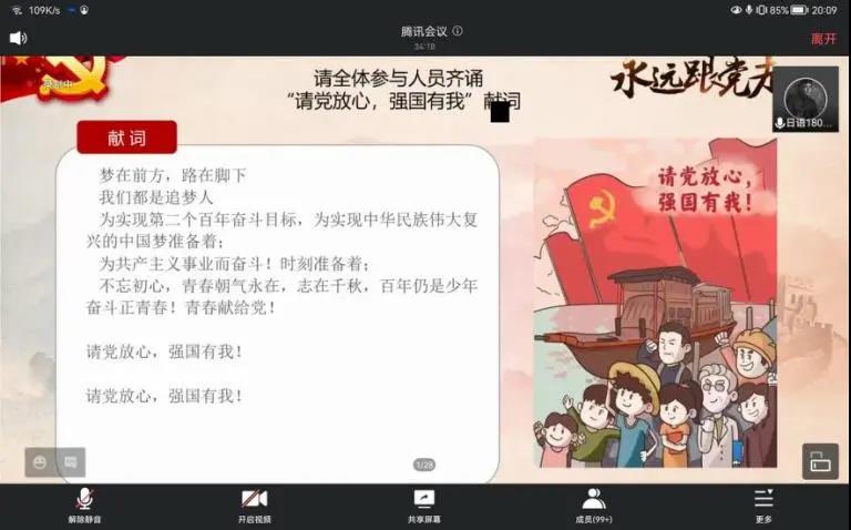 在喜迎新中国72周年华诞之际,为深入学习宣传贯彻习近平新时代中国特色社会主义思想,持续推进党史学习教育走深走实,进一步学懂弄通习近平总书记来陕考察重要讲话重要指示精神,10月5日晚,百合漫画 “雏志”理论研习社于线上开展“请党放心,强国有我”主题团日活动。研习社指导老师王明昕,分团委组织部干事,各年级团支书,百合漫画 全体入党积极分子共200余人参与了本次活动,活动由研习社社长蒋东成主持。