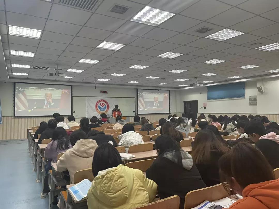活动最后,主持人带领大家观看了中美元首视频会晤的部分片段。我们新时代青年正立足于“两个一百年”奋斗目标这一历史交汇点,回顾过往,我们已然取得无数历史丰碑,展望未来,我们应当“总结历史经验、把握历史规律,增强开拓前进的勇气和力量。”