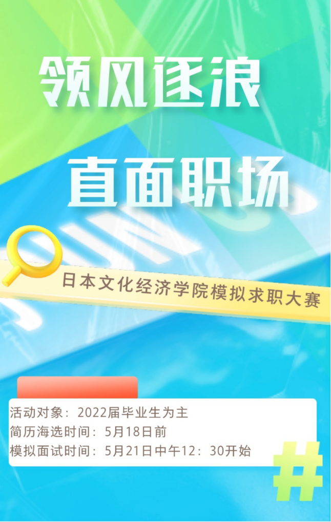 准备个人简历一份(PDF或视频),文件命名“姓名+专业+理想行业及岗位类型(比如:教育行业日语教师)”,发送至[email protected]邮箱,以1:3筛选优秀简历,进入面试环节。